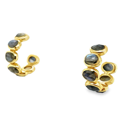 Herkimer 3-Stone Linear Drop Huggie Earring