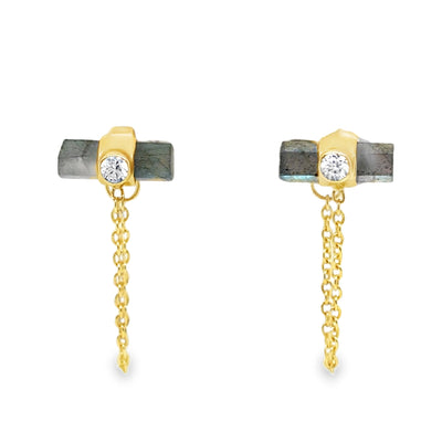 YGP Herkimer 3-Stone Linear Drop Huggie Earring