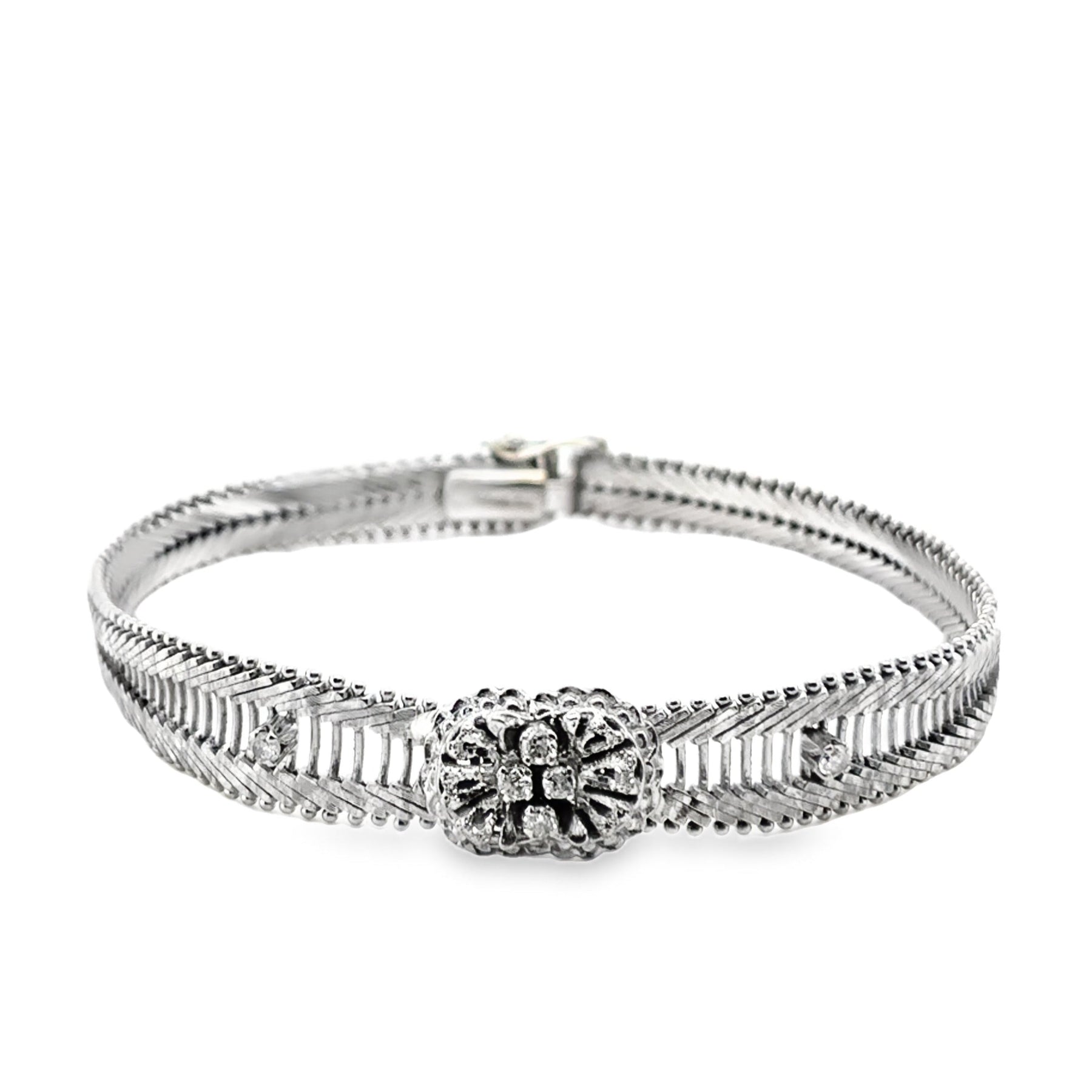Timeless charm meets refined elegance in this 18K White Gold Vintage Diamond Bracelet. Designed with delicate sophistication, it features sparkling diamonds that add just the right amount of shimmer. Perfect for layering or wearing solo, this vintage-inspired piece makes a beautiful gift or a treasured personal keepsake.