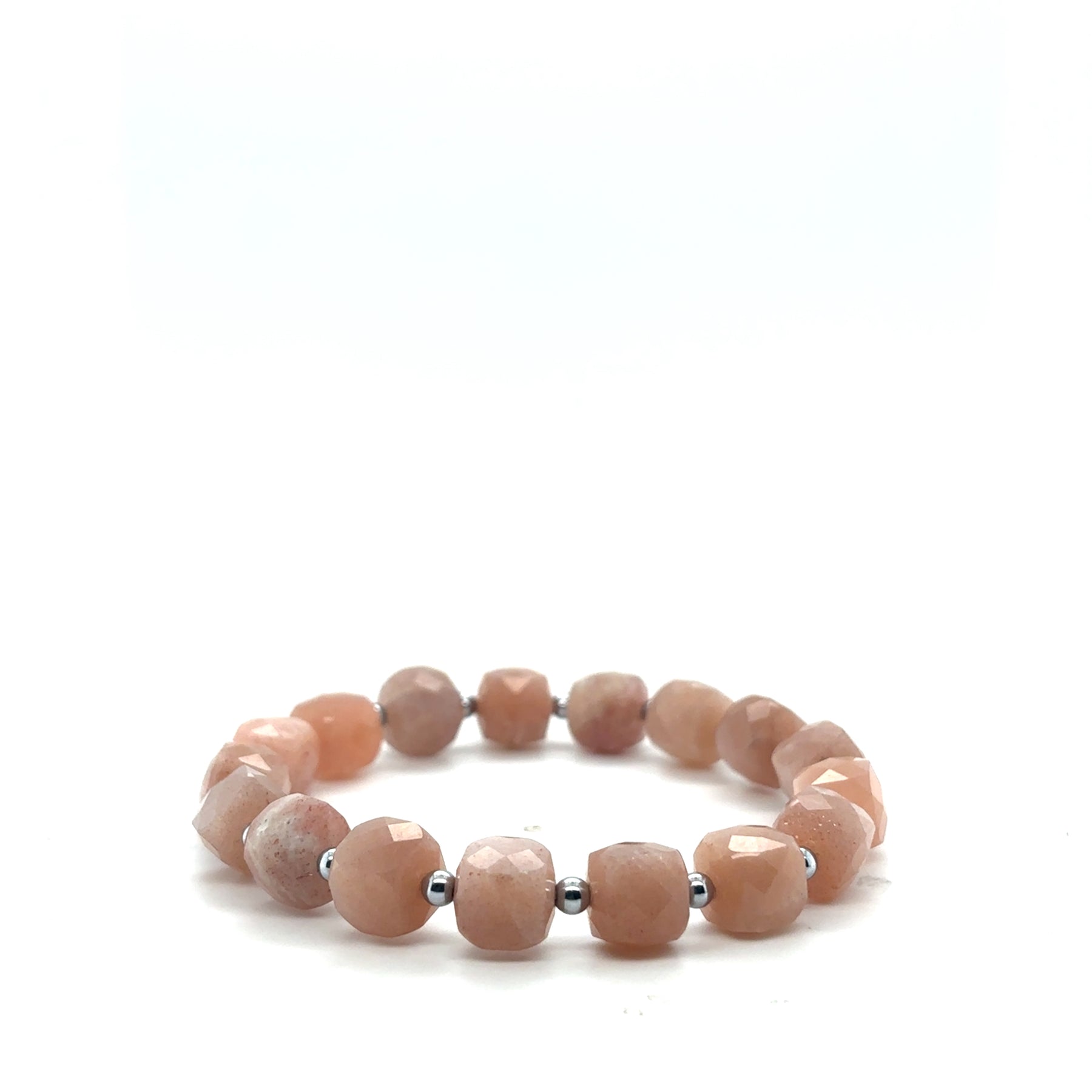 8x8mm Cubed Beaded Sunstone & 3mm Hematite Stretch Bracelet