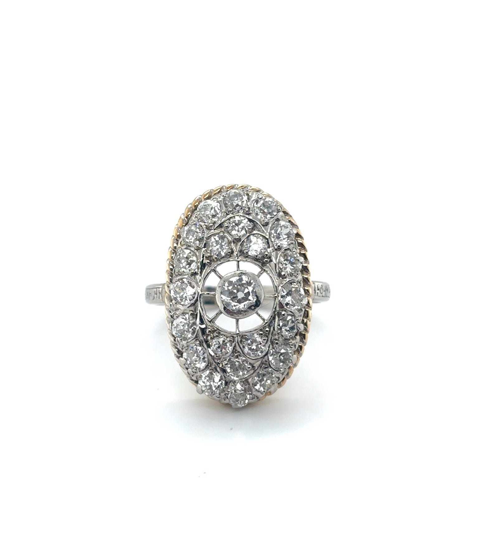 Vintage Art Deco Platinum Ring w/ 14KY Accents and Old Mine Cut Cluster